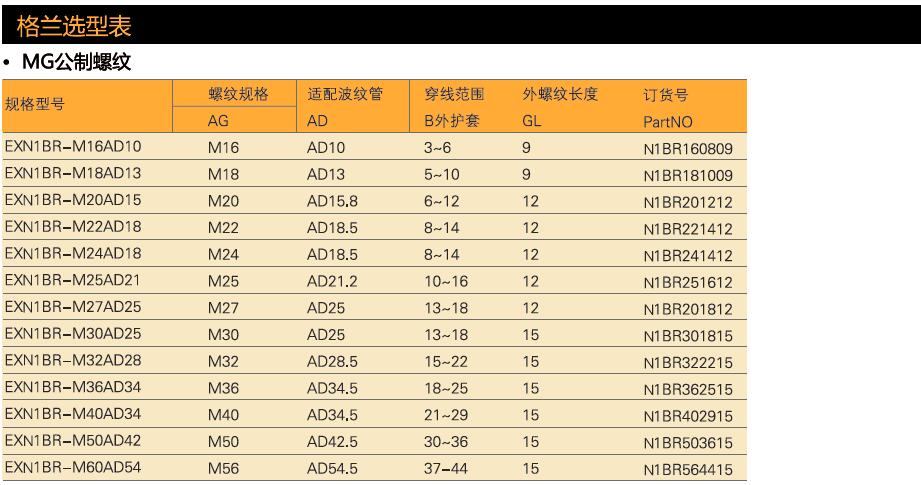 型号:N1BR波纹管电缆固定头